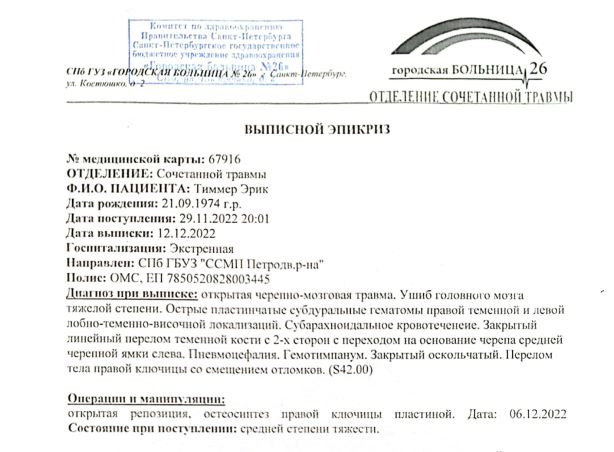 При полученных травмах, врачи говорили, что Эрик должен был умереть или остаться "овощем".