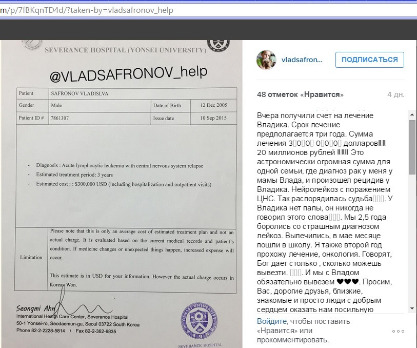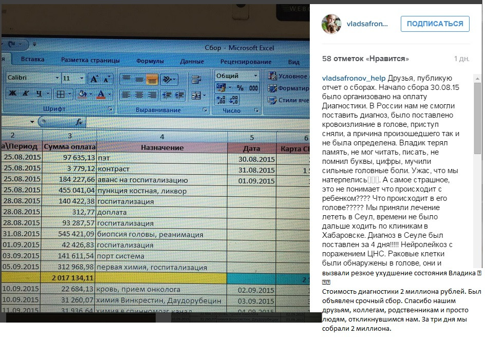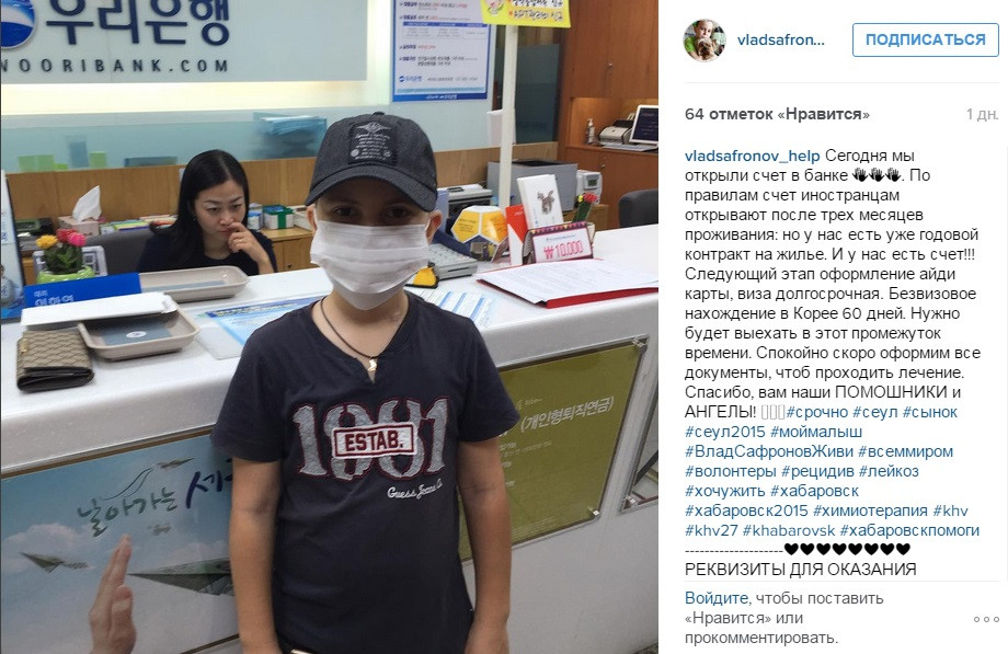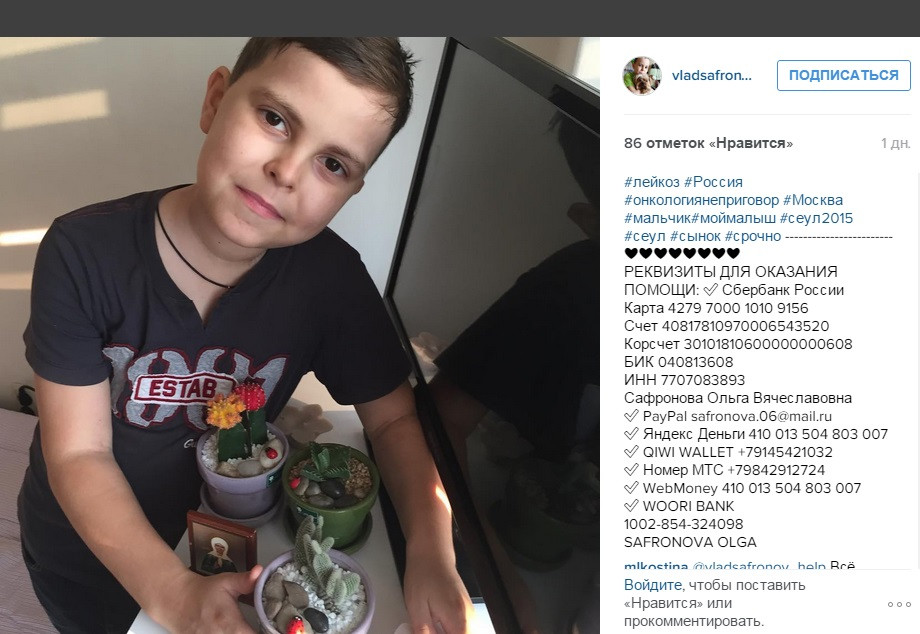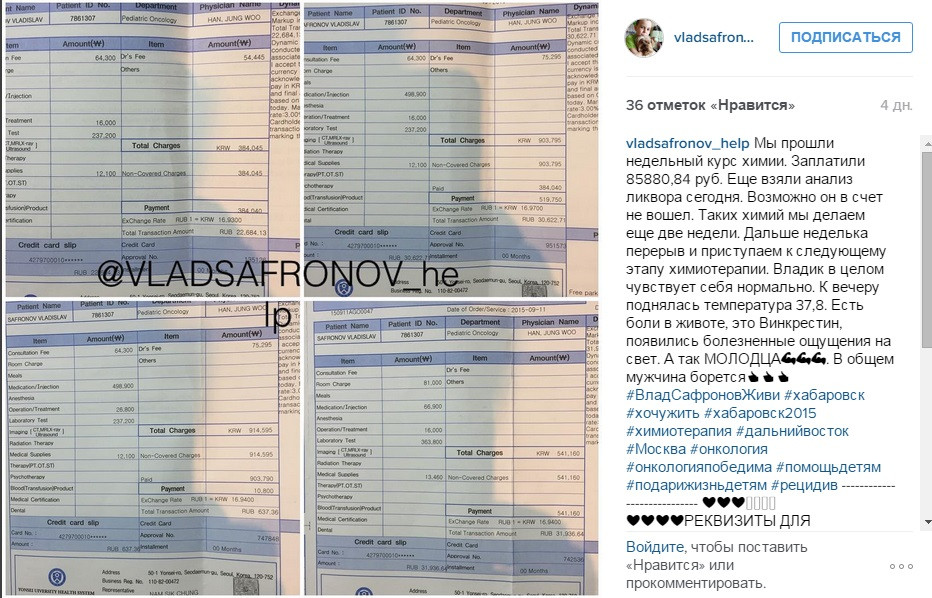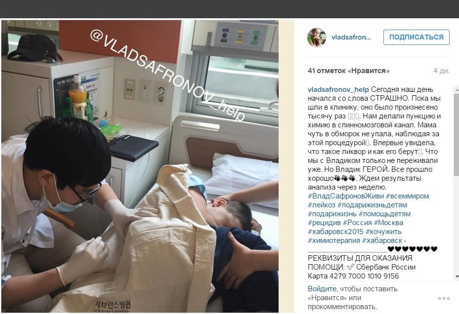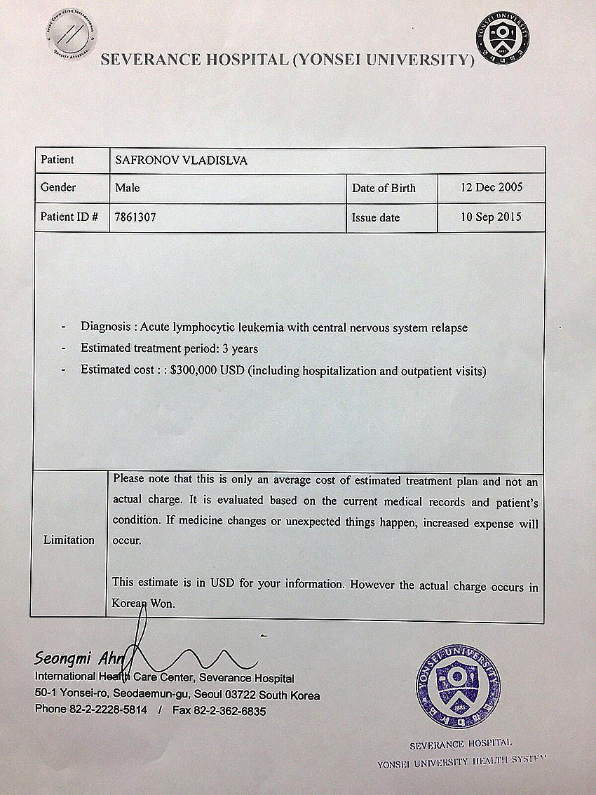 Врачи в Сеуле дают надежду на выздоровление Владика. Но лечение длительное 3 года и дорогое. Стоимость лечения 300 000$. Цена этому больше 20 миллионов рублей, а это тысячи наших завтраков, мячей и велосипедов! Всё, что у нас есть – мы уже отдали Владику, но этого очень и очень мало.