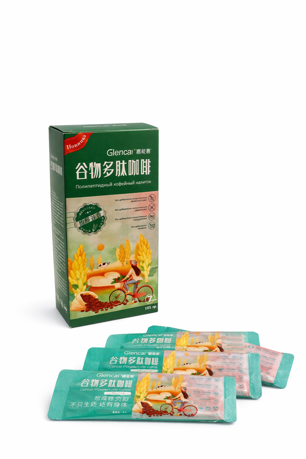 Glencar® Полипептидный кофейный напиток — это современный функциональный напиток на основе растворимого кофе, растительных и молочных белков, полипептидов злаков и орехов, а также полезных жиров и витамина E. Это не просто кофе, а функциональный полипептидный напиток с мягким тонизирующим эффектом, питательным составом и чистой формулой без сахара, искусственных добавок и транс-жиров. Подходит для активного дня, осознанного питания и людей, выбирающих «умную энергию».