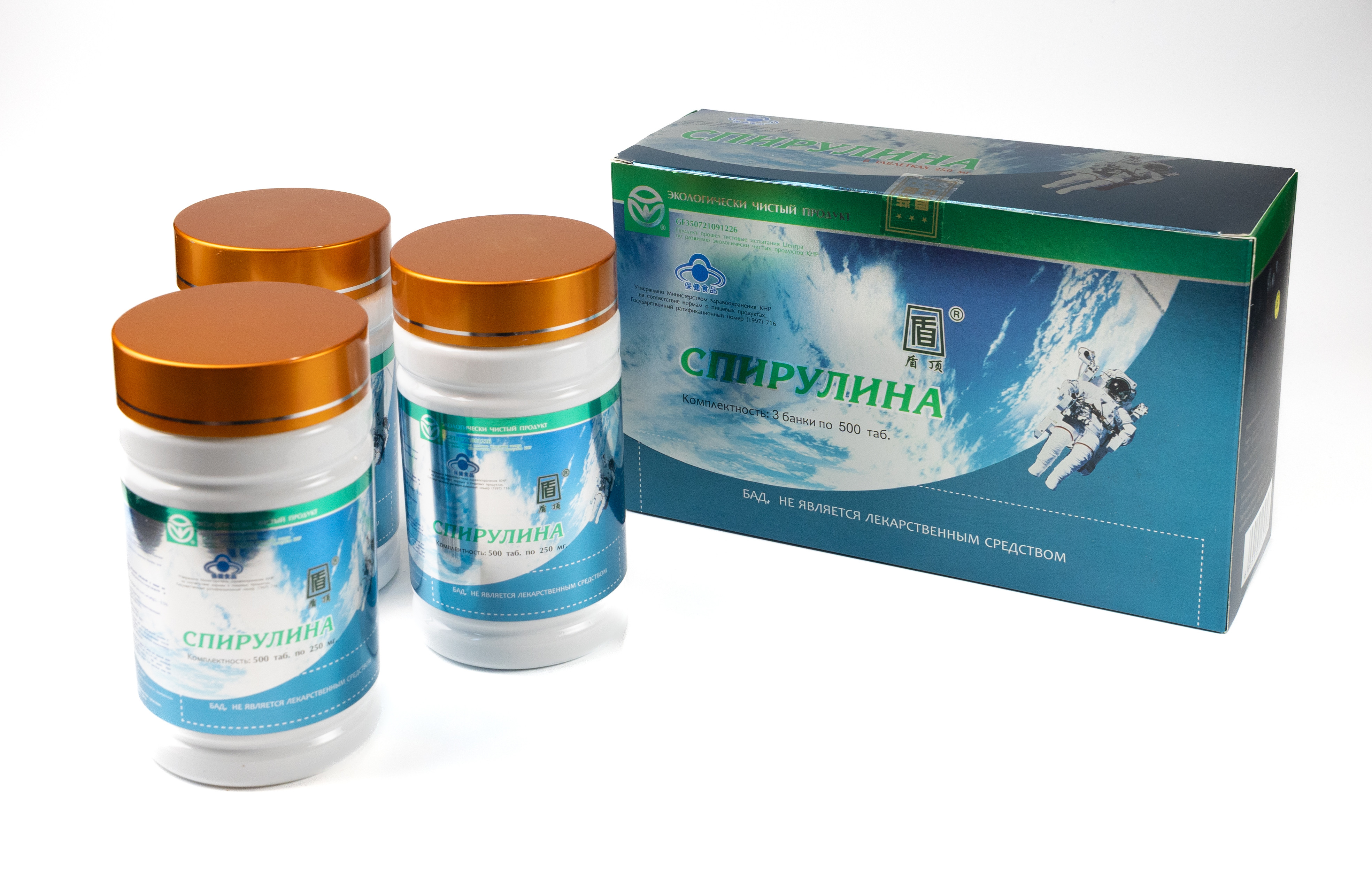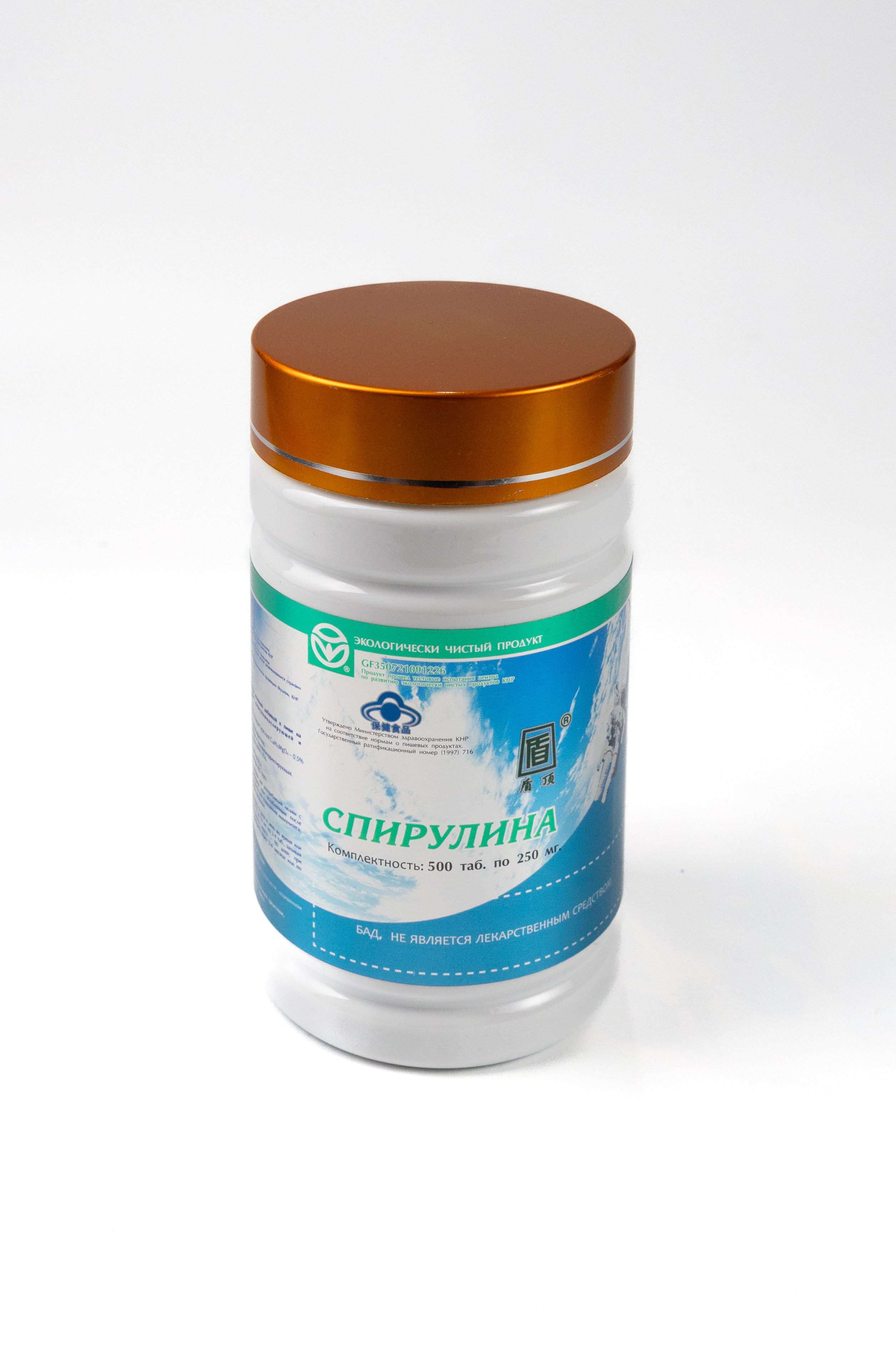 Производство: Спирулина, используемая в данном продукте, выращивается в горах Уишань, на севере провинции Фуцзянь, где расположены экологически чистые источники минеральной воды. Здесь очень много солнечного света и свежего чистого воздуха, поэтому с применением профессиональных методов ведения сельского хозяйства и вырастает столь высококачественный продукт – спирулина. На данное предприятие по производству спирулины оформлены сертификат системы менеджмента качества ISO90012000, сертификат системы контроля безопасности пищевых продуктов (HACCP), сертификат соответствия европейским стандартам производства лекарственных средств (GMP), сертификат соответствия стандартам экологически чистых пищевых продуктов. Оно также является единственным китайским предприятием, которое признано отделом по сотрудничеству Юг-Юг Организации Объединённых Наций в качестве образцовой базы для производства спирулины. Государственный ратификационный номер: (1997) 716.